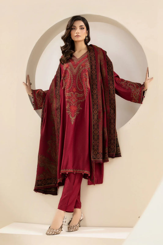 VL658/2 3PC Khaddar Embroidered Suit with Printed Wool Shawl