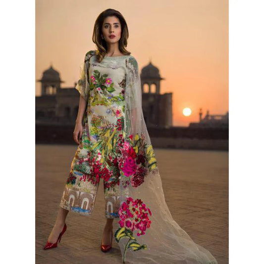 Lawn 3-Pcs Printed Plus Heavy Embroidered With Organza Dupatta. VL759