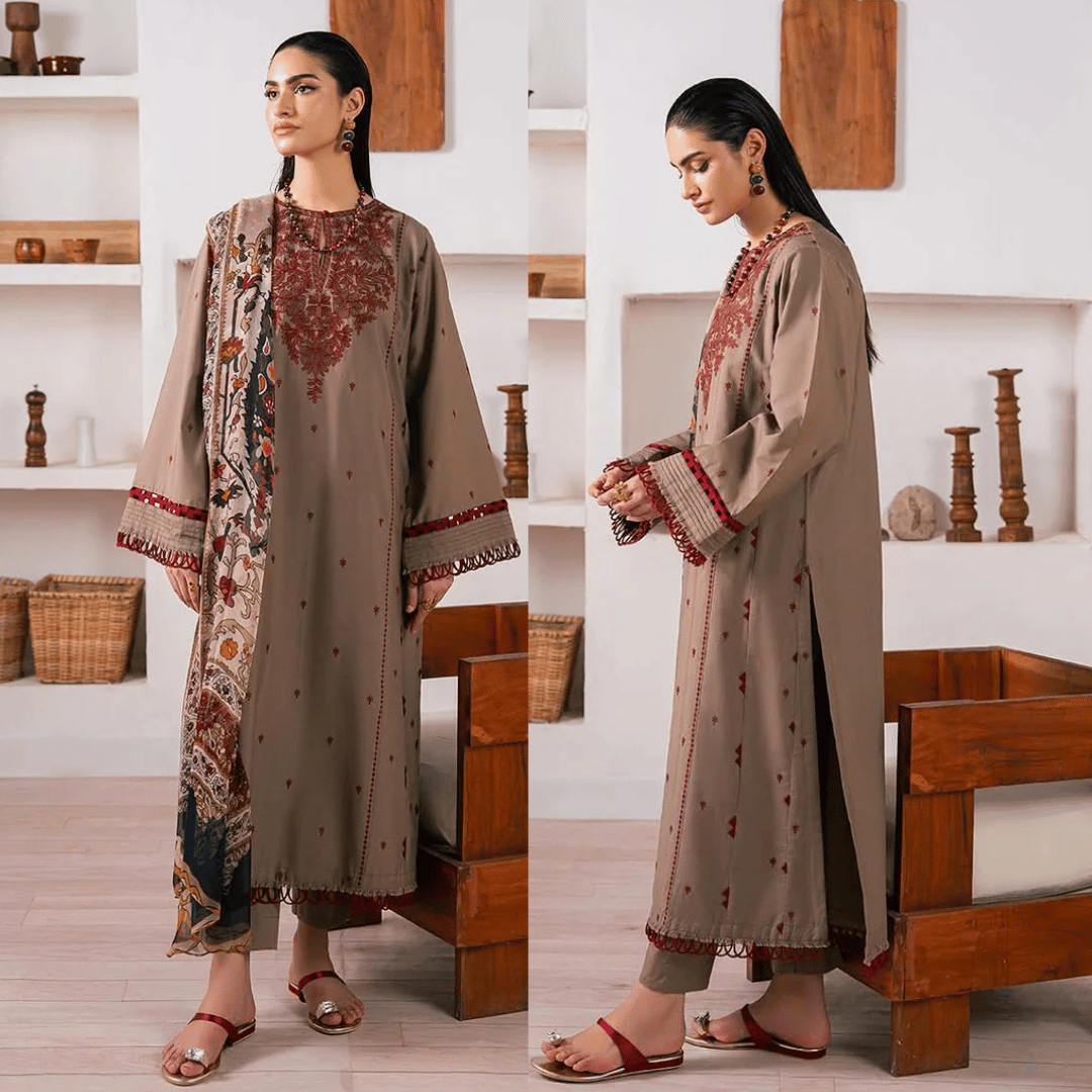 Baroque - 3PC Dhanak Embroidered Suit - VL1183