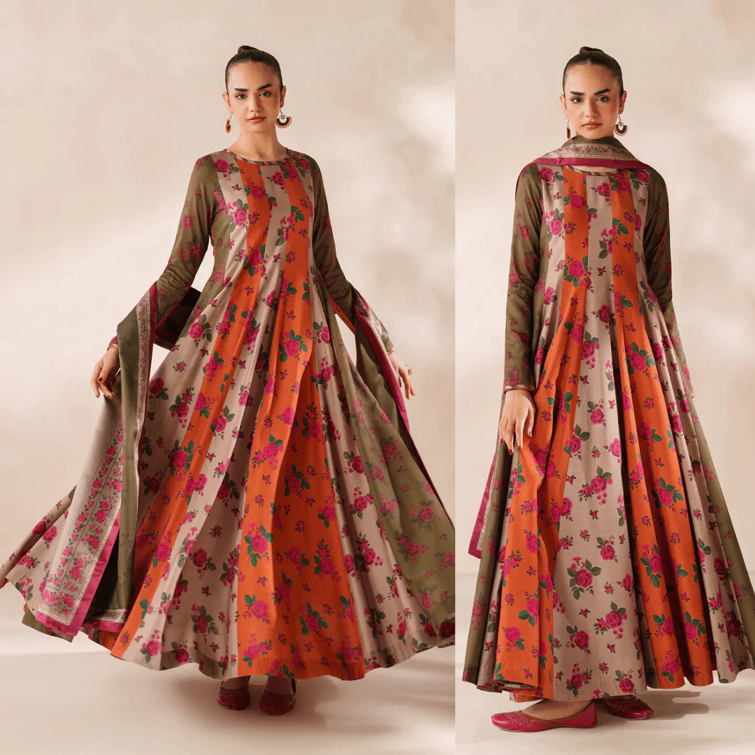 Baroque - Winter 3PC Frock Style Karandi Digital Print Dress - VL1180